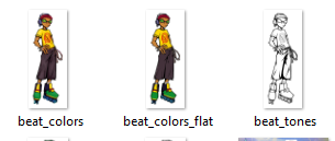in other news, im screwed. i got lazy and stopped saving all my files to my computer and opted to keep some on a usb. lo and behold, i managed to completely brick said usb. ive already looked into file recover and everything, and there absolutely no way for me to retrieve any of the files. like, at all. thankfully none of the comic pages/iSSUES were lost, but sadly some sketches and base files for character references were. so uh, beat is stuck wearing his orange swirl t-shirt until i can find a way to reliably convert the png ref images into straight linework.